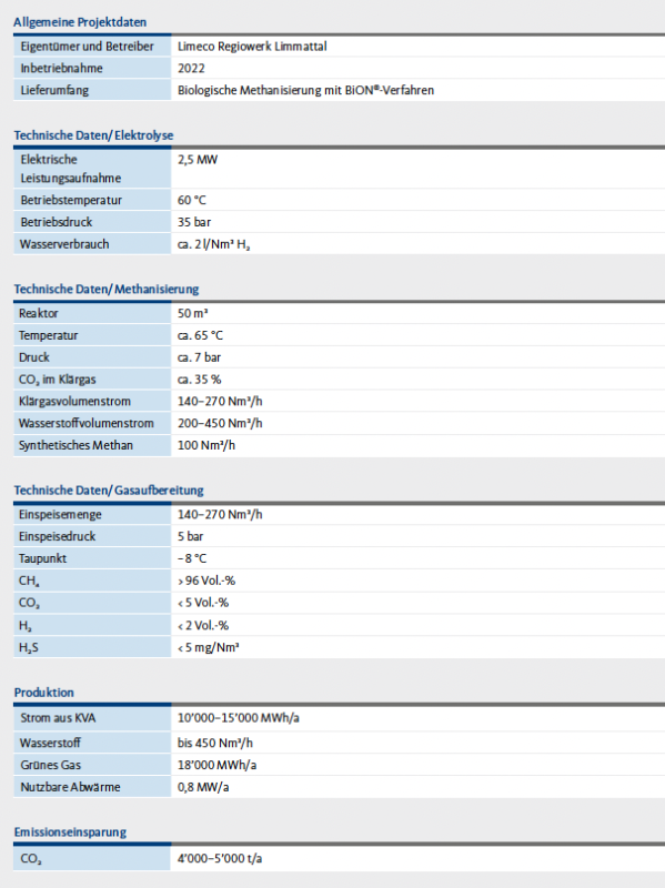 Limeco, das Regiowerk fürs Limmattal, hatte den idealen Standort für die erste industrielle Power-to-Gas-Anlage der Schweiz. Denn auf dem Gelände in Dietikon betreibt die interkommunale Anstalt eine Kehrichtverwertungsanlage (KVA) sowie eine Abwasserreinigung (ARA). Diese Kombination bot beste Voraussetzungen für die Errichtung der Power-to-Gas-Anlage, die in Zusammenarbeit mit acht Schweizer Energieversorgern sowie der Stadtwerke-Allianz Swisspower entstand und im Frühjahr 2022 in Betrieb ging. Sie besteht aus einem Elektrolyseur, dem BiON®-Methanisierungsreaktor, einer Gasaufbereitung sowie einer Technikeinheit für das Wärme- und Kühlmanagement. Das darin produzierte grüne Gas entspricht rund 5’000 Tonnen eingesparten CO₂-Emissionen, so viel wie etwa 2’000 Haushalte generieren.