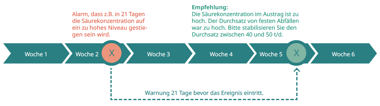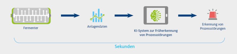 Eine automatische Früherkennung von Störungen der Prozessbiologie im Fermenter ist mithilfe einer künstlichen Intelligenz in wenigen Sekunden möglich. Im Falle einer Störung löst das System einen Alarm aus und ermöglicht dadurch dem Betriebspersonal ein schnellstmögliches Eingreifen. Das System verwendet dabei online verfügbare Anlagendaten der vorhandenen Messungen. Damit ist das System in vielen unterschiedlichen Anlagentypen einsetzbar.
