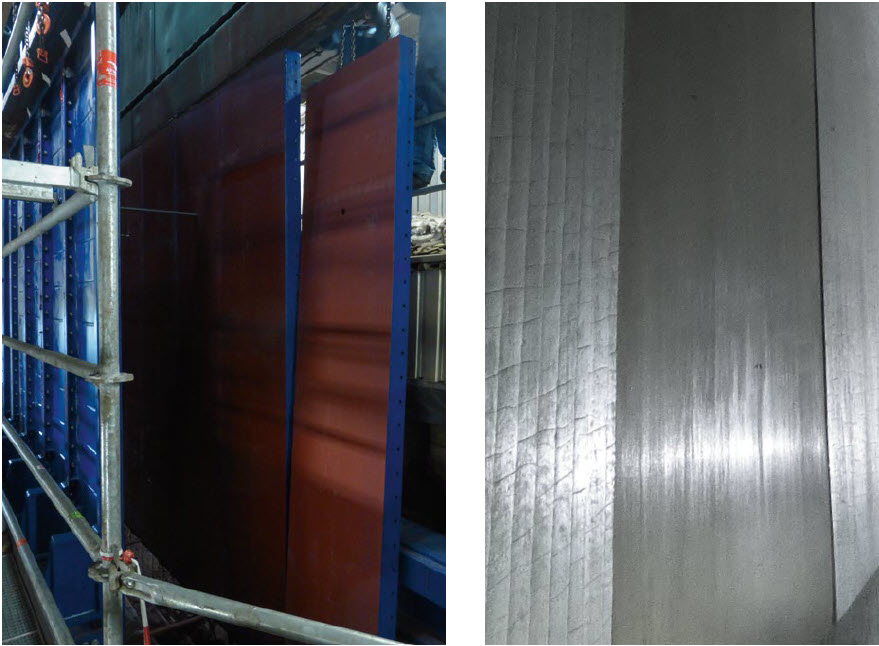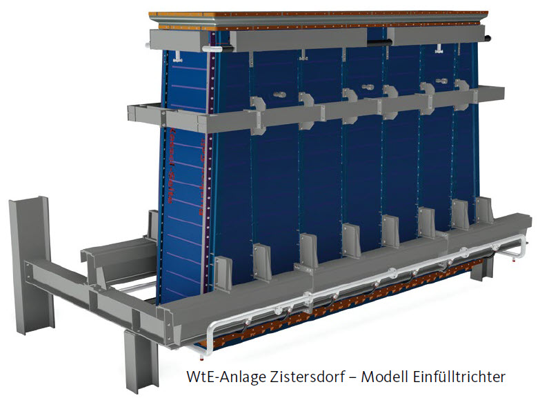 WtE-Anlage Zorbau L2 – Für die Innenflächen auf der Bunkerseite wurden verschiedene Materialien (Schweissplattiert 12+4 und S235JR 16mm) verwendet.