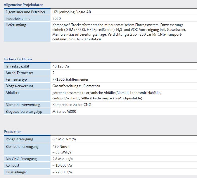 Die Kompogas®-Anlage mit integrierter Biomethanerzeugung in Jönköping-Hult verwertet organische Abfälle aus der Region zu Biogas. Aufbereitet und komprimiert kommt es als grüner Kraftstoff an CNG-Stationen zur Betankung von Bussen, Müllfahrzeugen und PKW zum Einsatz. Die Anlage ist ein Vorzeigeprojekt sowohl für Schwedens Dekarbonisierungsstrategie als auch für optimale Ressourcenverwertung und bietet Potenzial für die Produktion weiterer Kraftstoffe.