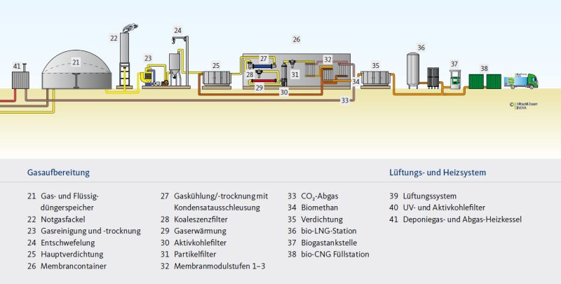 Die State-of-the-Art-Anlage mit deutlich gesteigerter Abfalldurchsatzmenge und robustem Vergärungsverfahren bietet aber auch einschlägige Perspektiven für die Zukunft. Sie ist die ideale Plattform, um mit weiteren Kanadevia Inova-Lösungen die Erzeugung grüner Kraftstoffe auszubauen. So lässt sich durch Biomethanverflüssigung bio-LNG für den Schwerlast- und Langstreckenverkehr produzieren. Zudem kann das CO₂ aus der Gasaufbereitung mit Power-to-Gas-Technologie zur Erzeugung von synthetischem Methan verwertet werden: Dabei wird zunächst mittels Wasserelektrolyse unter Verwendung von erneuerbarem Strom grüner Wasserstoff erzeugt, der dann mit dem CO₂ aus der Biomethananlage in einer katalytischen Methanisierung zu Synthetischem Natur-Gas (SNG)