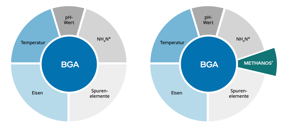 Mit der Zugabe von METHANOS® F3 in die Biogasanlage lässt sich der Biogasprozess gezielt steuern und optimieren. Unterm Strich steht eine deutliche Effizienzsteigerung der Biogasanlage, ohne dass dafür die technischen Gegebenheiten unter grossem Aufwand verändert werden mussten.