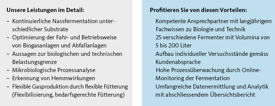 « Für eine Vergärung mit bestmöglicher Gasausbeute passen wir den Versuchsaufbau Ihrem individuellen Bedarf an. »