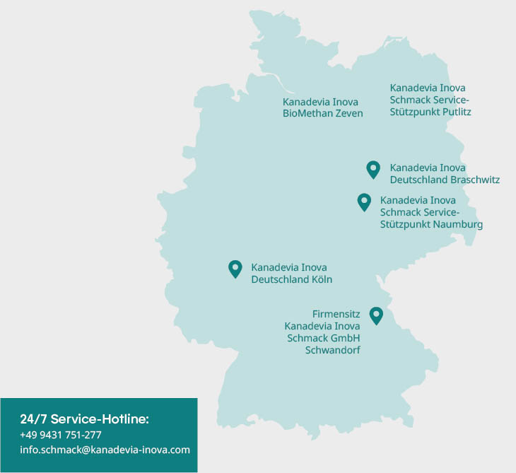 Ob Landwirte, Stadtwerke oder Energieversorger: Aus dem Schmack-Servicekonzept können sich Betreiber genau die Bausteine aussuchen, die ihren Bedürfnissen und Anforderungen am besten gerecht werden. Unser Servicenetzwerk aus spezialisierten Mitarbeitern steht Ihnen jederzeit mit Rat und Tat zur Seite.