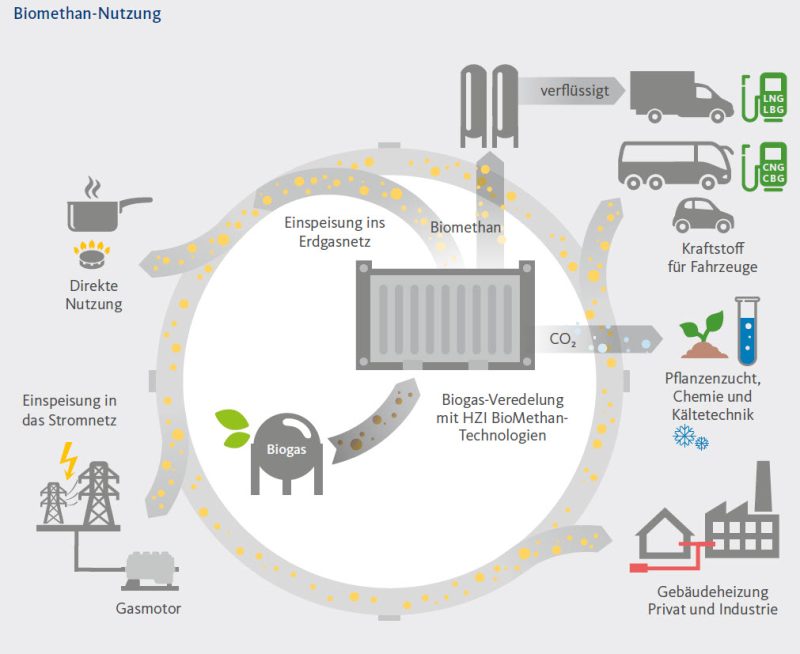 Energieträger Biomethan sowie CO₂-Produktgas für vielfältige Anwendungsbereiche.