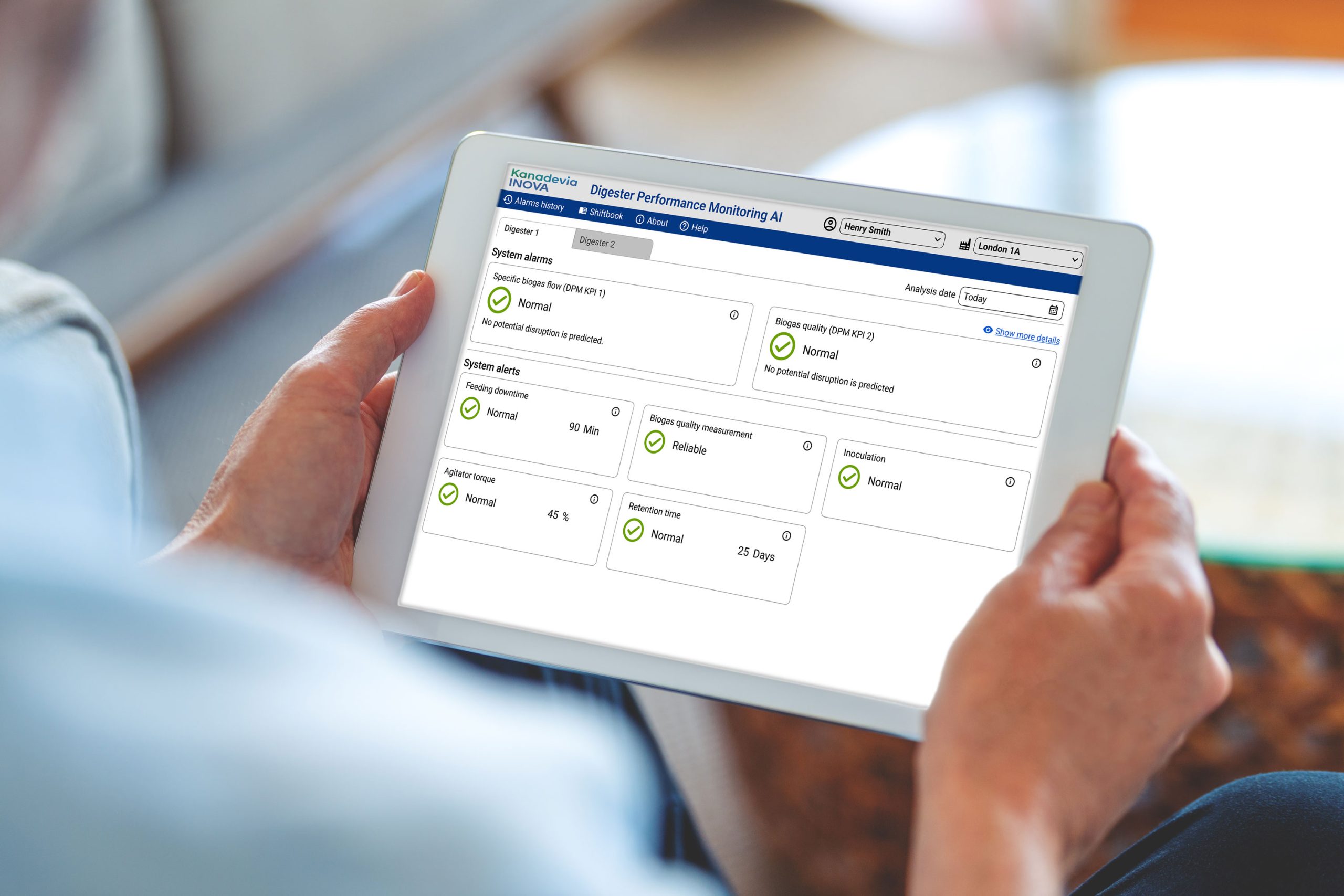 Artificial intelligence makes the automated early detection of disturbances in the biological process in the digester possible within a few seconds. In the event of a disturbance, the system triggers an alarm and enables the operating personnel to intervene as quickly as possible. Because it uses plant data available online from existing measurements, the system can be deployed in many different types of plant.