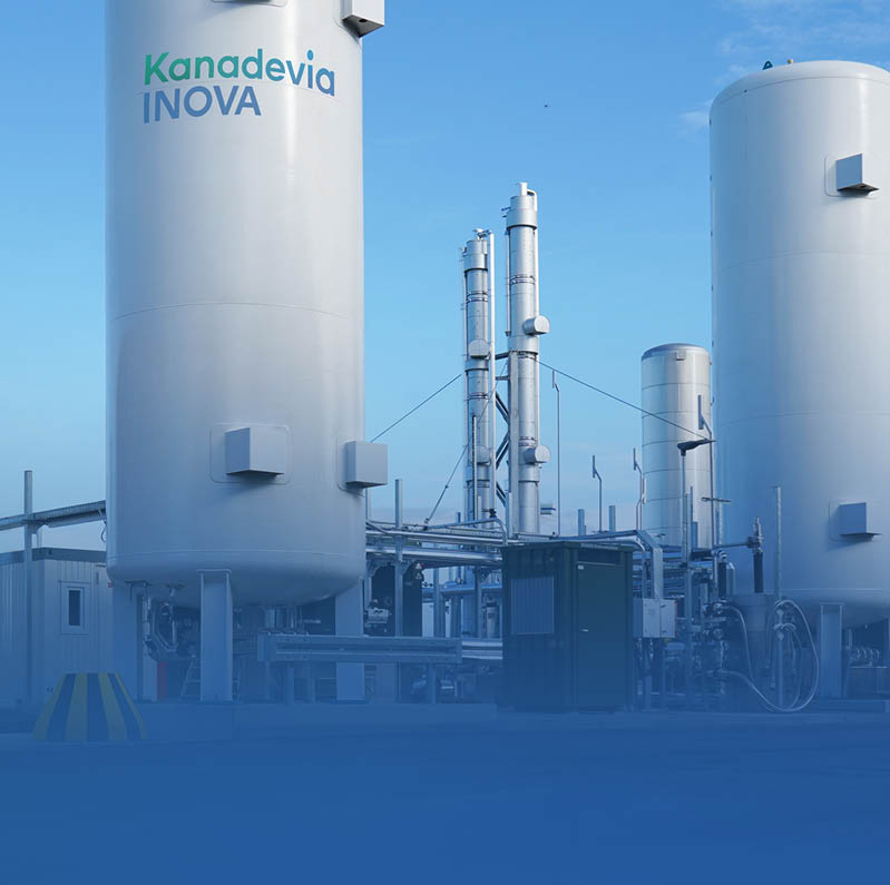 Raw biogas, whether it comes from an Kanadevia Inova plant or another source of fermentation gas, is treated using an Kanadevia Inova BioMethan gas upgrading process to produce high-grade biomethane which can be stored. This can be used as a green substitute for fossil fuels. CO2, either as a waste product of gas upgrading or from other sources, can also be used in liquid form in various industries and in transport.
