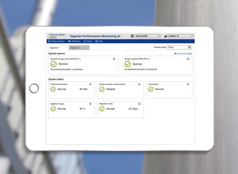 Thanks to artificial intelligence, the automated early detection of disturbances in the biological process in the digester is possible within a few seconds. In the event of a disturbance, the system triggers an alarm and enables the operating personnel to intervene as quickly as possible. The system uses plant data available online from existing measurements, meaning that it can be used in many different types of plant.