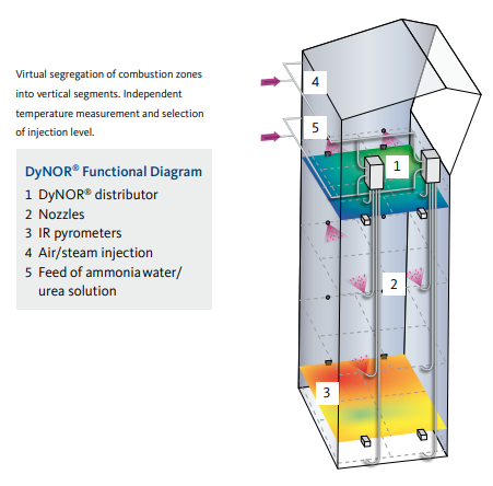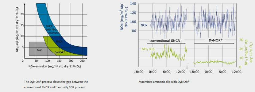 DyNOR® is the answer to Europe’s tightened nitrogen oxide limits. Simple in design and easy to install, the non-catalytic DyNOR® process closes the gap between the costly SCR process and the conventional SNCR process. It is an investment that pays off.