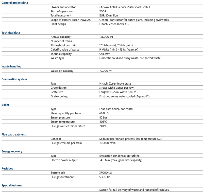 The Zisterdorf Waste to Energy plant is proof of a successful co-operation between waste management and waste treatment. The facility, located 60 km north-east of Vienna, is capable of treating up to 135,000 tons a year of domestic solid waste and processed waste while at the same time exporting sufficient electricity to power more than 25,000 homes.